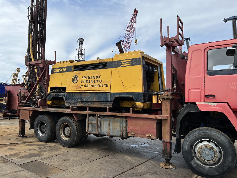 sisu 12e480 6x6 water well drill atlas copco xrv410 (500m 28bar)